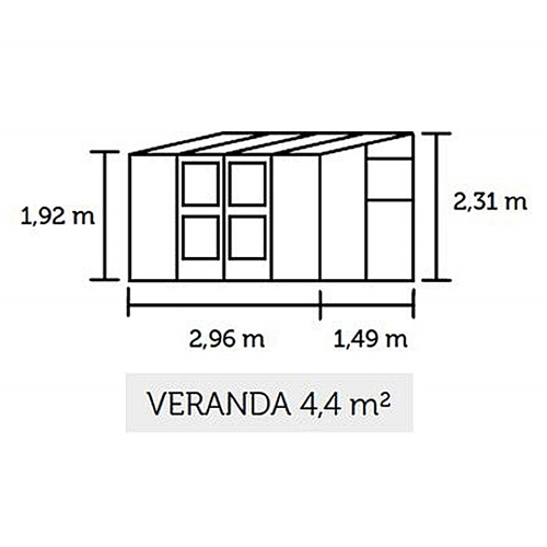 Juliana Veranda er en vægmodel eller vægdrivhus, som fås i tre størrelser: 4,4 m², 6,6 m² og 12,9 m² og fås i farvervarianterne alu/sort og grå/sort.