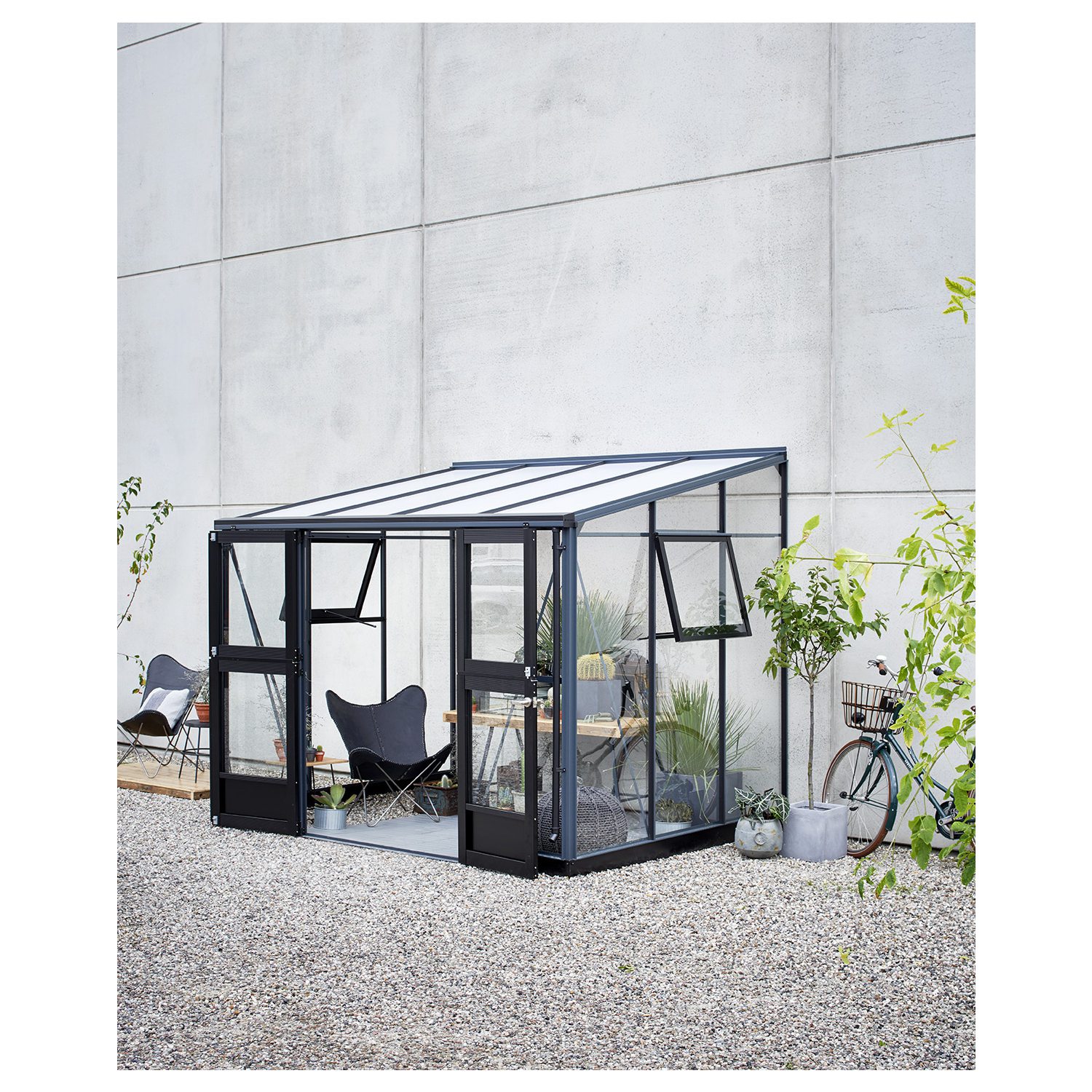 mur i haven. Står drivhuset op ad en husmur, bliver