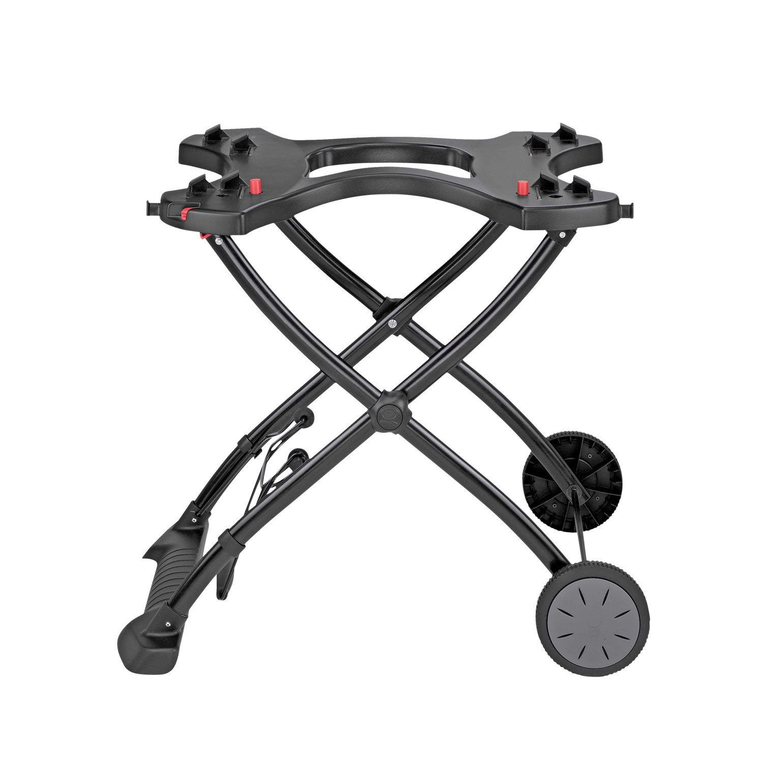 Grillning væk fra terrassen Den sammenklappelige vogn er designet til at gøre det lige så let at grille på farten som at vende en burger. Placer din Q-grill på vognen og brug den som en stationær stand, der sidder i den optimale grillhøjde. Når du er klar til at tage din grill med på tur, skal du bare klappe vognen sammen og rulle den hen til din bil eller direkte ned på stranden.